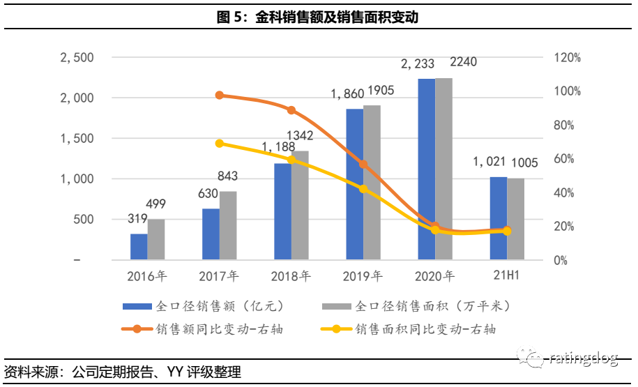 2021年1-6月,金科及所投資的公司實(shí)現(xiàn)銷(xiāo)售額約1,021億元,同比增長(zhǎng)17.6%;銷(xiāo)售面積約1,005萬(wàn)平方米,同比增長(zhǎng)16.9%。按照2021年銷(xiāo)售目標(biāo)計(jì)劃(不低于2,500億元),上半年完成全年目標(biāo)的41%。下半年是發(fā)力推盤(pán)還是動(dòng)態(tài)調(diào)整銷(xiāo)售目標(biāo)仍需觀(guān)察。
