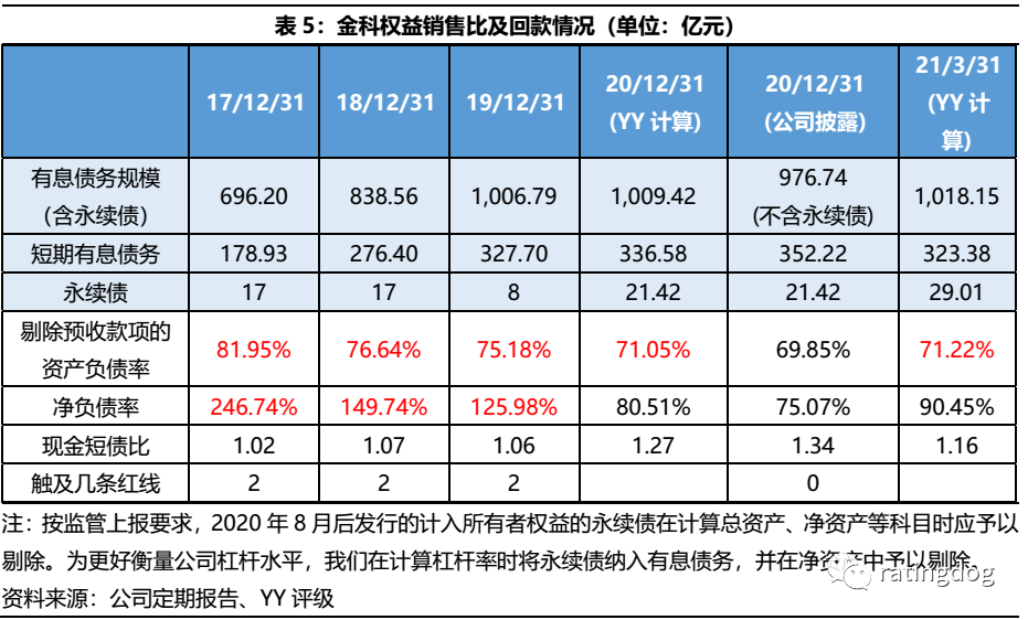 財(cái)務(wù)方面,公司三道紅線(xiàn)指標(biāo)在2020年末快速轉(zhuǎn)綠,即得益于債務(wù)受控和經(jīng)營(yíng)回款,也依靠物業(yè)子公司分拆上市、發(fā)行永續(xù)債和增加少數(shù)股東權(quán)益等手法。與此同時(shí),公司表內(nèi)融資結(jié)構(gòu)惡化值得關(guān)注,而YY之前深度報(bào)告所述的表外債務(wù)風(fēng)險(xiǎn)也并未緩解。