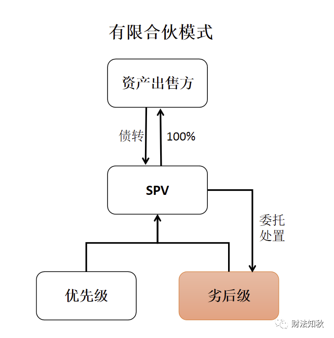 1、優先劣后共同成立有限合伙SPV,以SPV作為主體去收購債權。