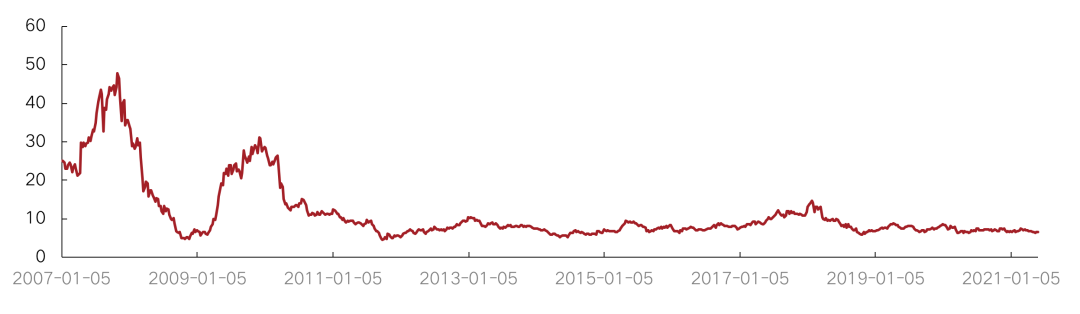 備注:1)恒生中國內(nèi)地地產(chǎn)指數(shù)的推出主要是為了反映前10只市值最大、流通性最高,在香港上市但主要營業(yè)收入來自中國內(nèi)地的房地產(chǎn)股票表現(xiàn)。當(dāng)前成分股共10只,分別為:中國金茂、中國海外發(fā)展、世茂集團(tuán)、龍湖集團(tuán)、華潤置地、龍光集團(tuán)、碧桂園、中國恒大、碧桂園服務(wù)、融創(chuàng)中國
