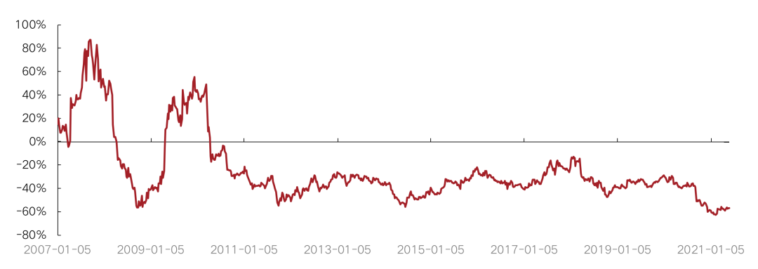 備注:相對PE=(克而瑞內(nèi)房股領(lǐng)先指數(shù)成分股整體PE/恒生指數(shù)成分股整體PE-1)*100%
