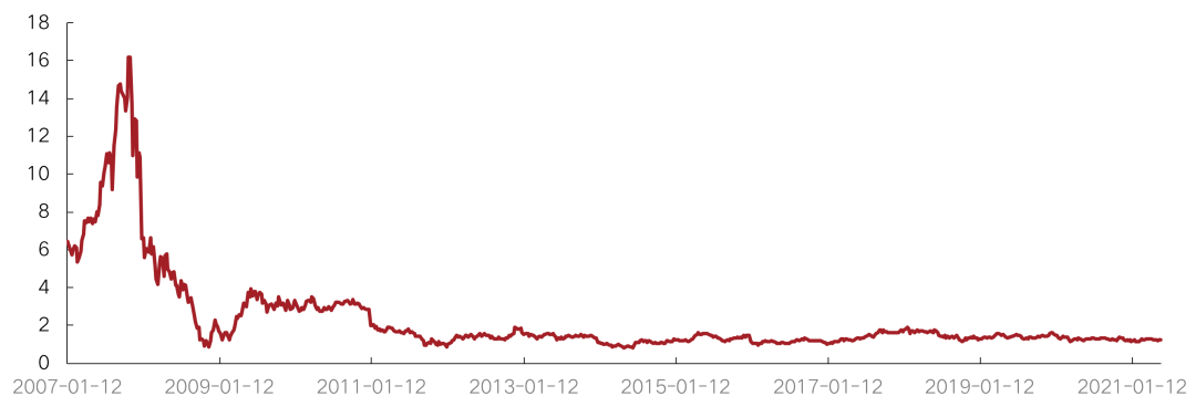 領(lǐng)先指數(shù)PB估值走勢平穩(wěn)