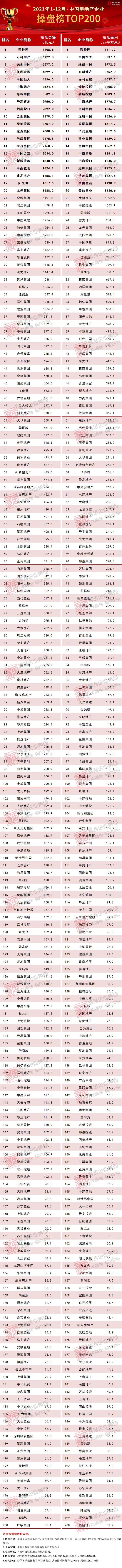 而TOP50房企銷售操盤金額門檻則較去年同期同比下降14.9%至570.6億元,與其他梯隊房企出現一定程度的分化。截至12月末TOP100和TOP200房企的銷售操盤金額門檻均同比降低至200.3億元和55.1億元,規模房企分化加劇。此外,從千億房企數量來看,2021年全口徑千億房企數量與去年持平,保持在43家。
