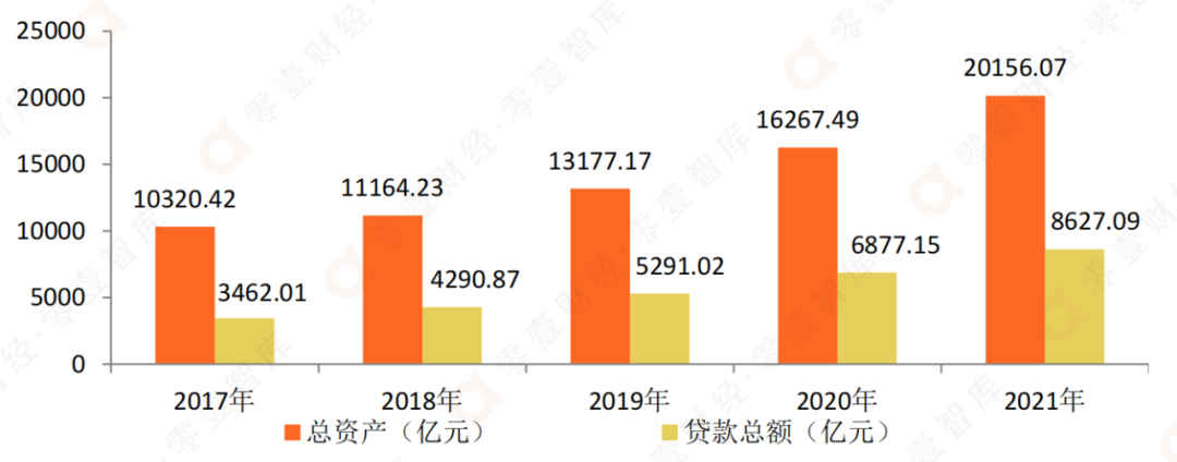 圖 1:2017-2021年寧波銀行總資產(chǎn)與貸款總額