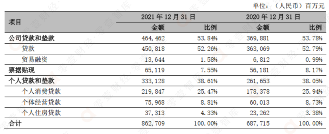 表 1:寧波銀行2021年個(gè)人貸款金額與占比情況