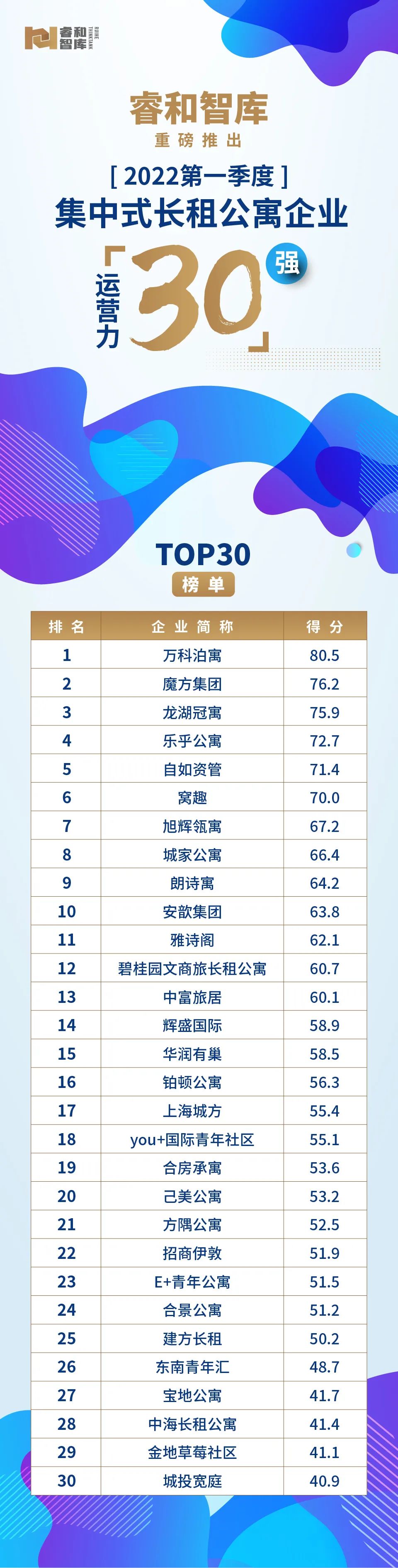 圖2:2022年Q1TOP30集中式長租公寓運營企業背景情況