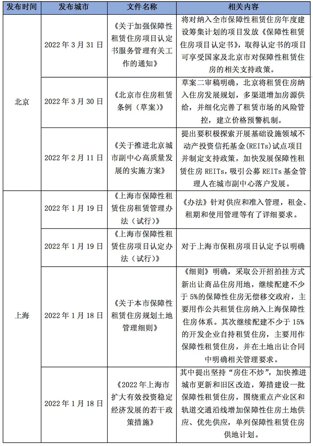 表2:2022年Q1北京、上海保障性租賃住房相關政策