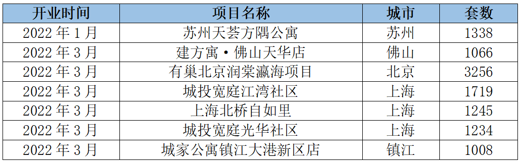 表3:2022年Q1部分新開業大型租賃社區項目匯總
