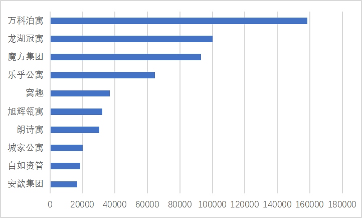 圖1:2022年Q1TOP10集中式長租公寓運營企業累計在營房間規模(單位:間)