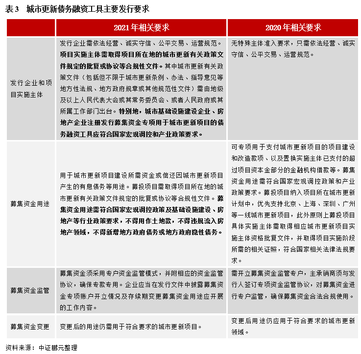 8月10日,交易商協會發布《債務融資工具注冊發行業務問答(第11期) 募集資金專項用于城市更新項目的債務融資工具》,對城市更新債務融資工具的發行做了相關要求。與2020年的要求相比,在發行企業和項目實施主體以及募集資金用途方面有更加規范的要求。