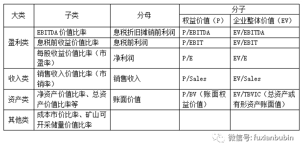盡管價值比例有很多種,但在評估實務中,最常用的有市銷率、市凈率和市盈率等。目前常采用的價值比率類型通常都是如下設置: