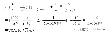 其成立條件:凈收益按等差級數遞減;凈收益逐年遞減額為B;收益年期有限為n;r大于零。如,根據被評估企業的章程,其于評估基準日的剩余經營年期為10年,且實際控制方也沒有繼續經營的意愿。若該企業未來10年的年凈利潤將保持每年10萬元的減少額,且當前的年收益為1000萬元。假定折現率為10%,該企業的股東全部權益為: