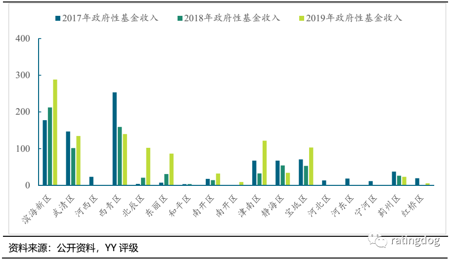 武清區(qū)和西青區(qū)GDP規(guī)模不大,但預(yù)算收入和政府性基金收入規(guī)模較大,特別是西青區(qū),雖近年基金收入有所下降,但規(guī)模仍排名靠前。