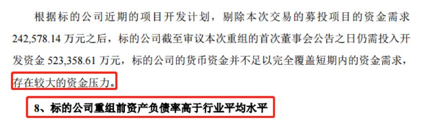 這里的標的公司就是指大悅城。中糧地產稱大悅城“存在較大的資金壓力”,另外還隨附上大悅城的資產負債率與同行業的對比情況。截至報告期末,大悅城資產負債率為64.25%,而同期可比香港上市公司資產負債率平均值和中位值48.6%和59%。