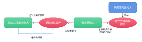結構概述:在該模式下,原始權益人通過委托貸款銀行向借款人/物業持有人發放委托貸款,享有委托貸款債權,同時物業持有人將物業抵押給委貸銀行;計劃管理人設立專項資產支持計劃募集資金向原始權益人購買其持有的委托貸款債權。代表性案例:深圳益田假日廣場資產支持專項計劃
