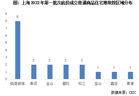 3)底價成交地塊:共有19宗。其中,13宗地塊集中于浦東臨港、奉賢新城、青浦重固、金山新城等近期樓市表現不佳的遠郊片區(qū)。除了樓市成交遇冷因素外,片區(qū)內潛在庫存高位也是房企拿地積極性不高的原因。以臨港片區(qū)為例,自上海集中供地以來,臨港就是上海的主力供應區(qū)域,加上此次成交的8幅地,自去年以來合計成交了30幅地,總建面高達567萬平方米,按照臨港片區(qū)當前的流速來看,消化周期長達5年以上。