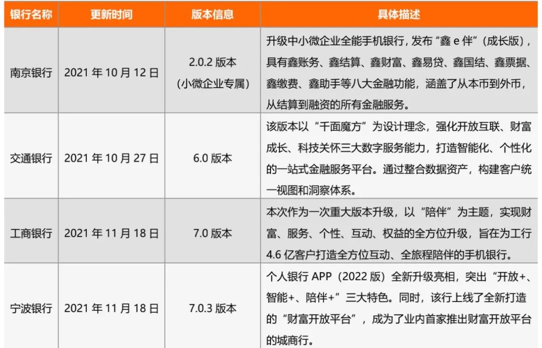 進入2021年下半年以來,我國零售金融業(yè)務涌現(xiàn)出全新的發(fā)展熱潮,譬如全民理財、智能隨身陪伴、一站式全場景生態(tài)平臺等新穎功能。目前,手機銀行App承載著零售金融縱深變革的重任,各家銀行均加快了迭代更新速度。同時,銀行業(yè)App“瘦身”也成為業(yè)界關注焦點,逐漸將手機銀行打造為獲客主渠道,以此來打造一個具備特色生態(tài)基因的數(shù)字銀行。