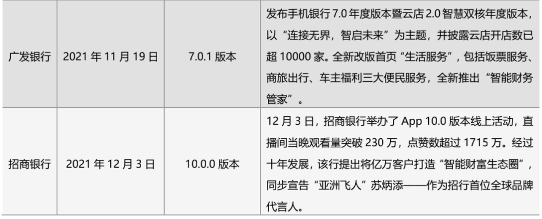 一是招商銀行發(fā)布10.0.0版本,作為“零售之王”,12月3日舉辦的線上發(fā)布會主題為“10”全“10”美,并突出“招財號”財富開放平臺的核心價值。App歷經(jīng)10年發(fā)展,在業(yè)界具備領先優(yōu)勢。尤其是招商銀行App正式通過“移動互聯(lián)網(wǎng)程序(App)安全認證”,成為銀行業(yè)首個通過該認證的App,展現(xiàn)在個人信息保護方面的領先性;