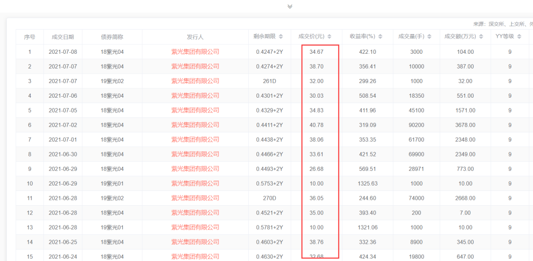 3、發(fā)行才3個(gè)多月就打?qū)φ鄣膫霈F(xiàn)了。寶能下屬鉅盛華的債21深鉅01連續(xù)兩天有凈價(jià)50的成交,作為當(dāng)年的風(fēng)云人物,姚老板在退出萬(wàn)科大股東之爭(zhēng)以后,用深業(yè)物流和鉅盛華兩個(gè)主體進(jìn)入債券市場(chǎng),但是票面齊刷刷的6.0 6.5 7.0 7.5%,我也從沒(méi)有碰到過(guò)能夠入庫(kù)的買(mǎi)方機(jī)構(gòu)。