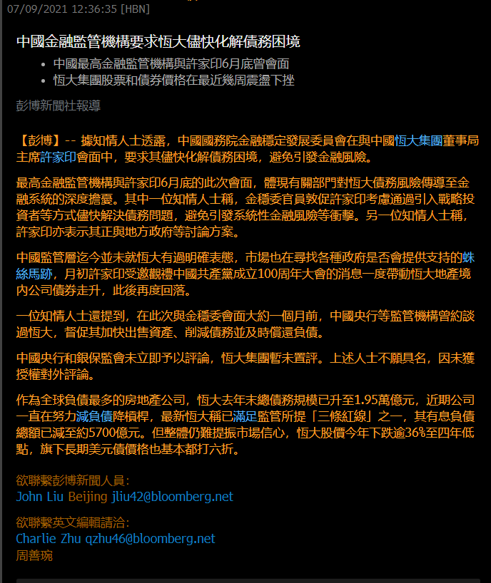 2、彭博報(bào)導(dǎo)金融監(jiān)管機(jī)構(gòu)要求恒大盡快化解債務(wù)困境。金穩(wěn)委官員敦促許家印引入戰(zhàn)投等方式化解債務(wù)問(wèn)題。昨天就傳中化下面的金茂和恒大有談,但是恒大辟謠了。