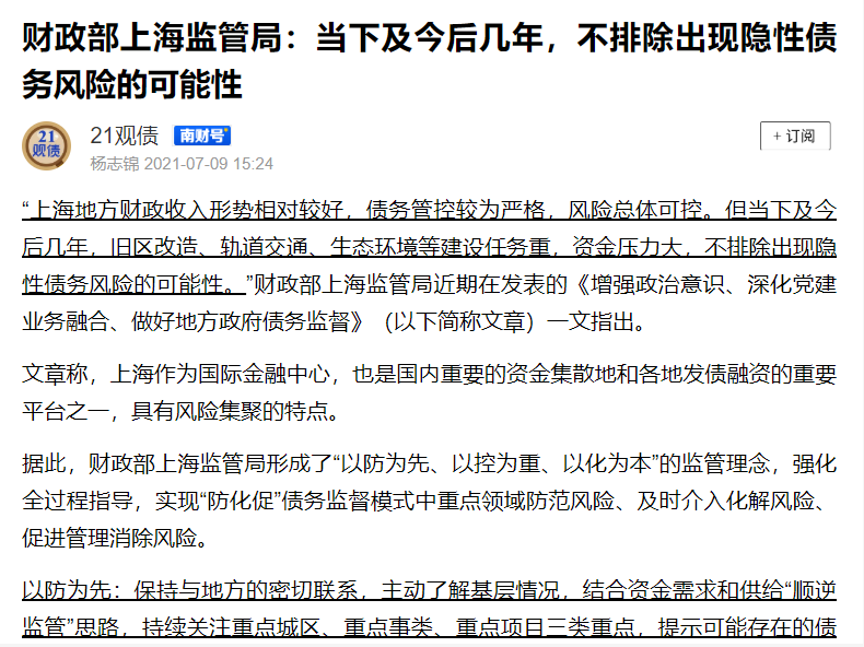5、財(cái)政部上海監(jiān)管局說(shuō),隱性債務(wù)有出現(xiàn)風(fēng)險(xiǎn)的可能。