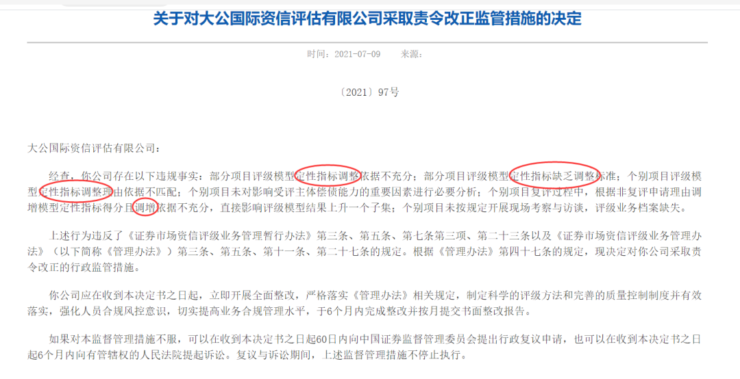 4、大公被北京證監(jiān)局除了監(jiān)管措施,里面列舉的違規(guī)事實(shí)基本圍繞: “定性指標(biāo)”這幾個(gè)字。其實(shí)就一句話——不少評(píng)級(jí)結(jié)果給高了。