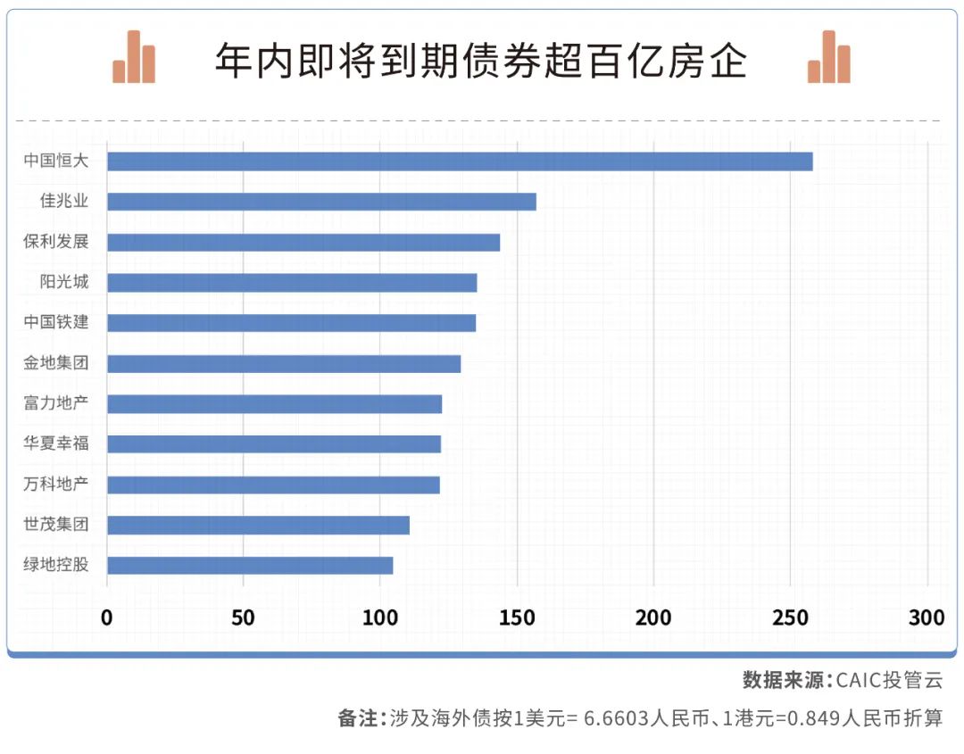 年內(nèi),有12家房企債券到期規(guī)模超百億,有8家為民營房企。