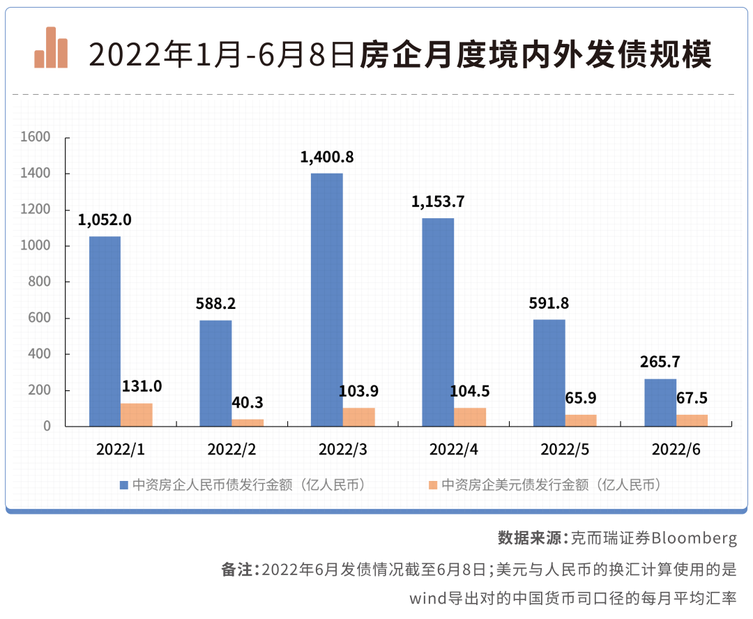 2022年以來,房企美元債幾乎處于“冰封”狀態(tài),截止6月8日,中資房企美元債累計(jì)發(fā)行金額為513億元,其中5月份更是年內(nèi)低點(diǎn),中資房企美元債共發(fā)行65.9億元,同比減少79%。