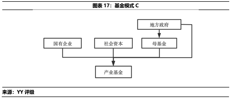進一步聚焦于產業基金資金流向,按照基金股東類別將基金分為三類,即類別A(國有企業+地方政府),類別B(國有企業+社會資本)和類別C(國有企業+地方政府+社會資本),根據政府參與程度來看,類別A市場化程度最低,而類型B市場化程度最高。