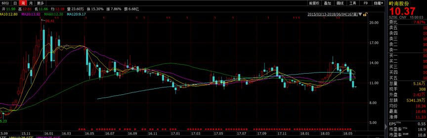 2017年,嶺南股份股價年度漲幅為1.14%;今年以來,股價跌幅超過8%;近一個月,其股價跌幅超過20%。以下為公司股價走勢圖: