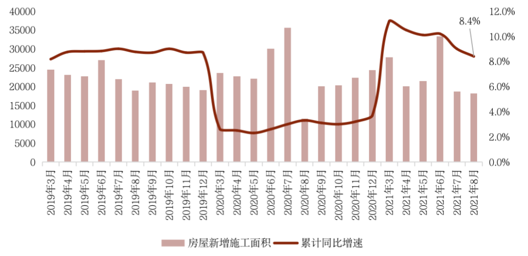 數據顯示,1-8月,房屋新開工面積135502萬平方米,下降3.2%,較1-7月降幅擴大2.3個百分點。受此影響,1-8月房屋施工面積同比增速再度收窄0.6個百分點至8.4%。