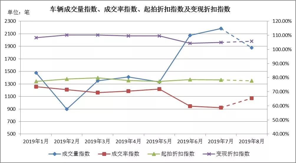 (五) 車輛:成交量大幅增長,成交率明顯下滑,起拍折扣指數(shù)小幅上升,變現(xiàn)折扣指數(shù)小幅下降