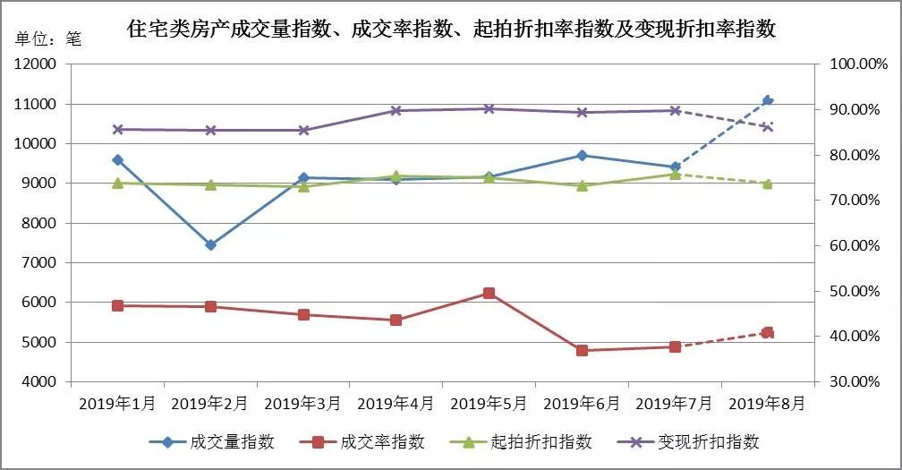 - 八月預(yù)測:成交量在10491至11694筆左右,成交率指數(shù)區(qū)間[38.42%,43.22%],起拍折扣指數(shù)區(qū)間[73.22%,74.33%],變現(xiàn)折扣指數(shù)區(qū)間[85.01%,87.56%]。