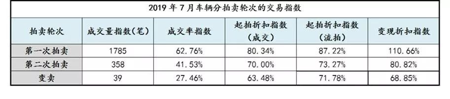 - 趨勢分析:7月車輛成交量為2182筆,小幅增長,增速較6月放緩,預(yù)測8月有回落趨勢;成交率為58.65%,較6月下降一個百分點;起拍折扣指數(shù)為78.34%,基本與上月持平;變現(xiàn)折扣指數(shù)為105.02%,小幅增長。