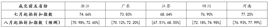 - 分拍賣輪次的五省起拍折扣指數(shù):