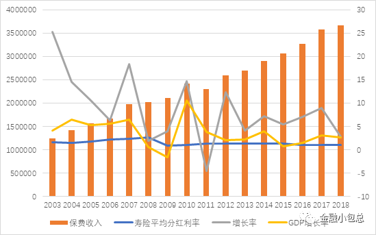 圖二:臺(tái)灣地區(qū)保費(fèi)收入及增速和GDP增速的對(duì)比