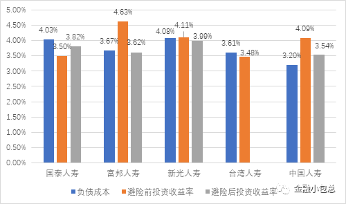 圖五:臺(tái)灣地區(qū)主要保險(xiǎn)公司2018年負(fù)債成本和投資收益率