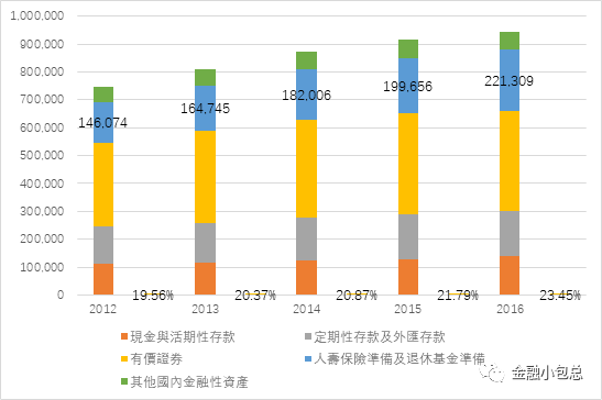 此外,臺(tái)灣地區(qū)稅法賦予年金險(xiǎn)每人每年24000新臺(tái)幣的稅費(fèi)減免也促進(jìn)了保險(xiǎn)產(chǎn)品的發(fā)展。目前保險(xiǎn)產(chǎn)品已經(jīng)成為臺(tái)灣地區(qū)家庭部門資產(chǎn)配置的主要組成部分,長(zhǎng)期維持在24%上下。