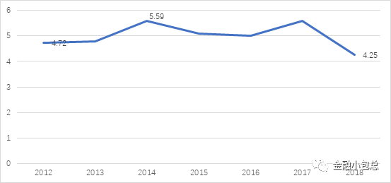 圖十九:2012-2018年臺(tái)灣地區(qū)保險(xiǎn)業(yè)凈值比走勢(shì)
