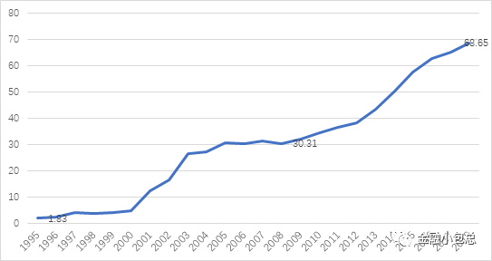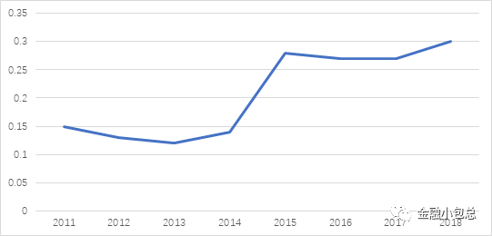 圖三:臺(tái)灣地區(qū)保險(xiǎn)業(yè)資產(chǎn)規(guī)模占金融機(jī)構(gòu)總資產(chǎn)比趨勢(shì)