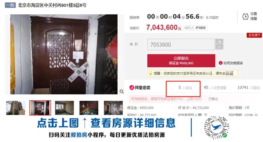 起拍價的提升并沒有熄滅人們對這套海淀優(yōu)質(zhì)房源的熱情,仍有5人報名展開激烈角逐。