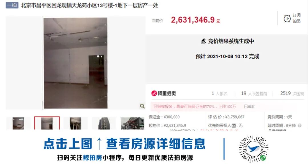 昌平回龍觀的一處地下室,經(jīng)歷了一輪拍出、悔拍、再次上拍、再次拍出,今日又以起拍價格263萬成交,與上次拍成價格相同。