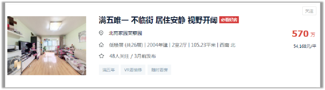 貝殼網(wǎng)上有滿五唯一的同戶型在賣,掛牌的價格是570萬元,可見這樣的起拍價也很難吸引到人。