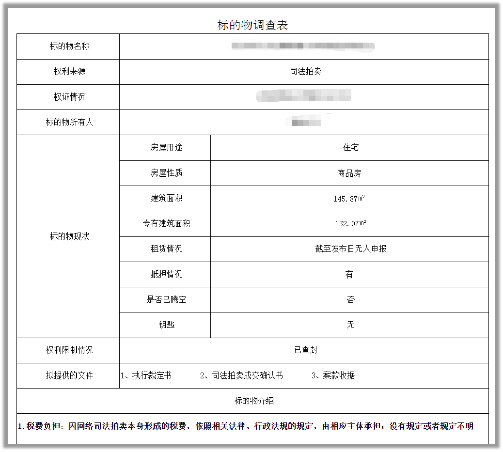 一般公告中常見的標的物調(diào)查表,不翼而飛,而標的物調(diào)查表是非常重要的記載房源信息載體,通常會公示房屋性質(zhì)、租賃情況、產(chǎn)權(quán)證號、被執(zhí)行人相關(guān)信息等內(nèi)容,這些是輔助競買人作出競買決策的重要信息,等不要提房子沒有評估報告了。