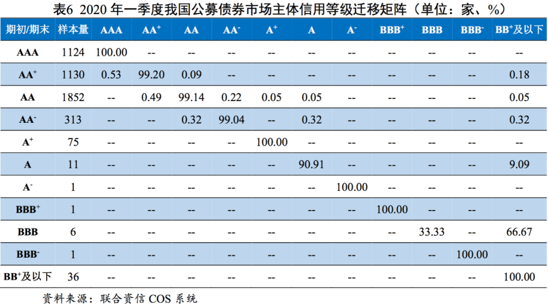 [9]信用等級遷移矩陣的計算方法采用Cohort法,即只對期初和期末均有效的發行人主體信用等級從期初到期末的變動情況進行統計,不包括統計期內新發和到期債券發行人主體信用等級的變動情況,亦不考慮期間等級多調和等級回調的情況。