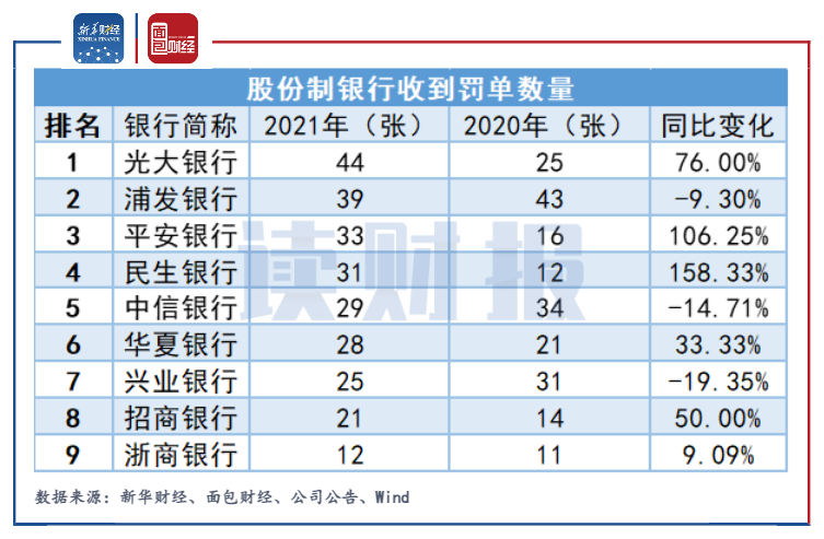 從前述統計分析來看,民生銀行和平安銀行2021年收罰單數量均較2020年翻倍增長。
