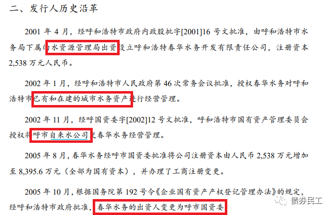 春華水務(wù)的出資人原為呼和浩特市水務(wù)局下屬的水資源管理局,后變更為呼和浩特市國資委,出資人為地方政府及其下屬機(jī)構(gòu)和單位。