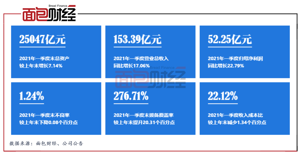 得益于增量風險防控和存量風險緩釋,該行的不良率持續(xù)走低。截至2021年3月31日,該行的不良貸款率為1.24%,較上年末下降0.08個百分點。