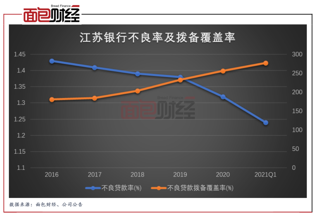 在營收、凈利保持兩位數(shù)增長的同時,江蘇銀行的資產(chǎn)質(zhì)量持續(xù)提升,不良貸款率連續(xù)5年下降,撥備覆蓋率持續(xù)5年提升。