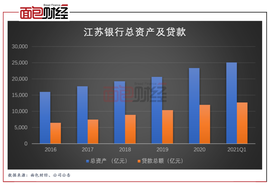 一季報顯示,該行的資產(chǎn)規(guī)模進一步擴大。截至2021年3月31日,江蘇銀行的總資產(chǎn)已達25047.81億元,較上年末增長7.14%。